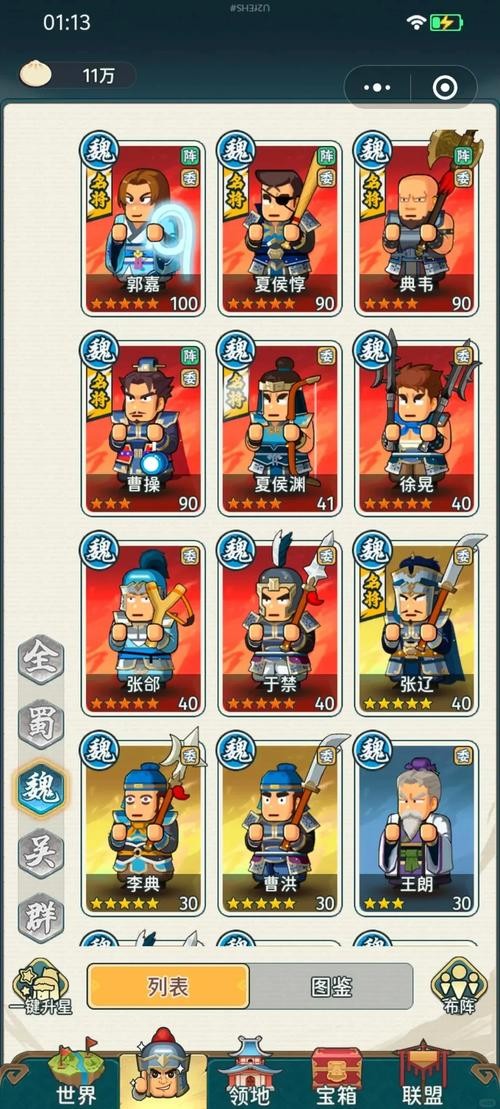 魏国:曹操、张辽、曹仁、荀彧。这套阵容攻防兼备,非常稳扎。曹操作为魏国的核心武将,能够为队友提供攻击和防御加成,张辽可以对敌方后排造成高额伤害,曹仁则是一名优秀的坦克,能够吸收大量的伤害,荀彧可以为队友回复生命值并解除负面状态。