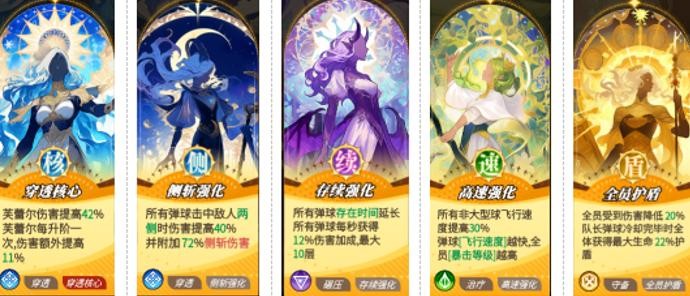 鉴于输出高度集中于兰,祝福选择应优先强化其单体爆发上限与队伍整体生存韧性。穿透系推荐“穿透核心”与“侧斩强化”,最大化机制收益;守备系可选用“正面强化”,通过击退创造安全距离,并搭配“全员护盾”提升承伤阈值;治疗系建议“高速强化”(提升弹球飞行速率,间接增加碰撞频次)与“边界强化”(直接提升弹球基础伤害);碾压系则适配“存续强化”,延长弹射持续时间,提升多段命中概率与全队增伤覆盖率。