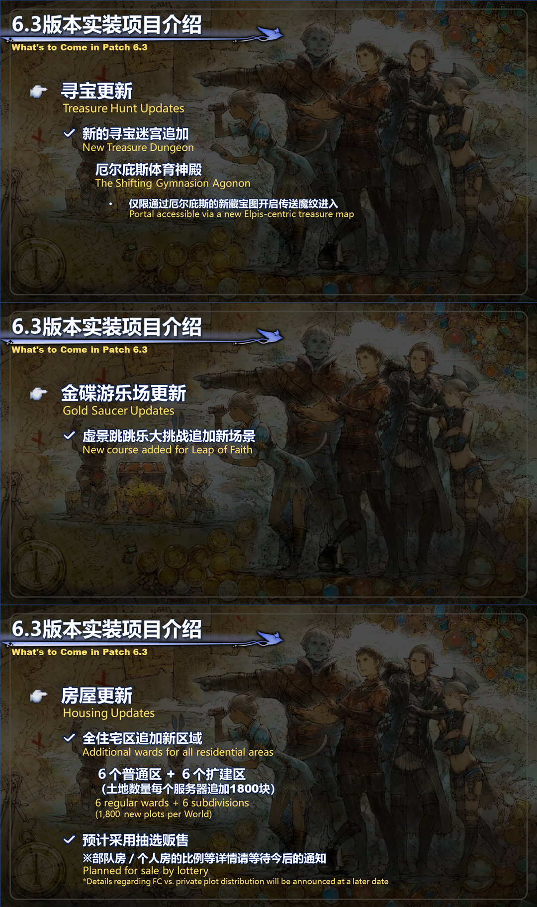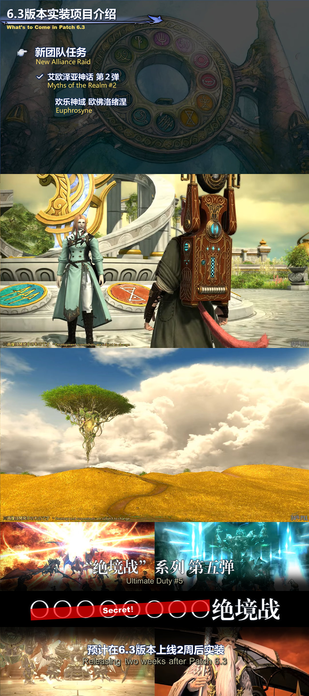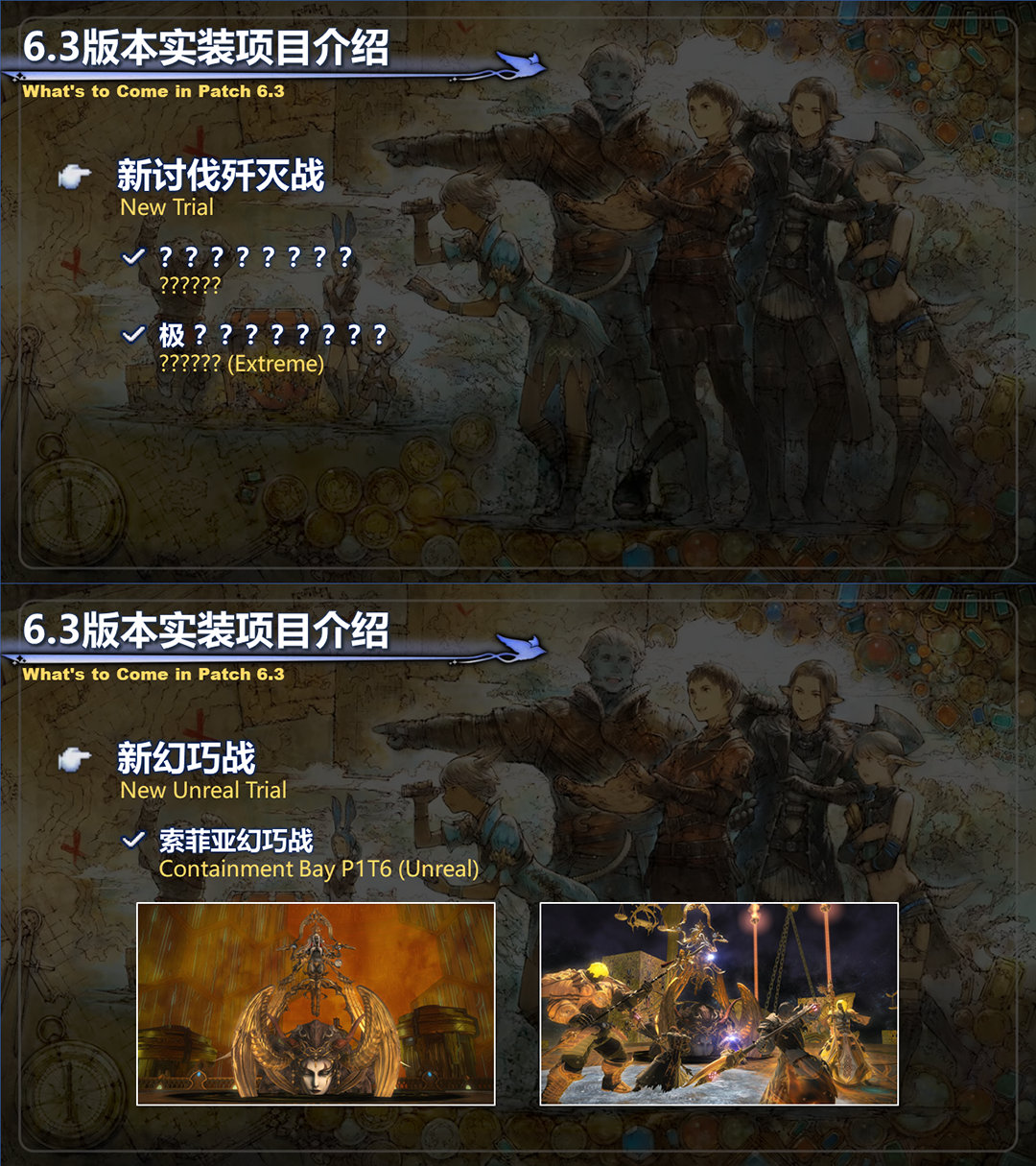 最终幻想14近期开启国际服制作人来信live,在直播中公布了大家翘首期待的6.3相关内容,6.3不出意外的话会有全新的绝本还有新的深层迷宫,下面附上更新时间。