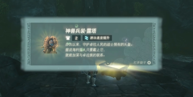 站在石头上往瀑布里游,可以发现里面有个小的空洞,进去能看到一个箱子,打开后获得神兽兵装露塔