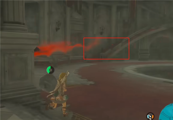 3、一直往里走,进入主殿,上主殿的红毯楼梯,能看到两个火盆,用弓箭+火焰果就能重新点燃两个火盆。完成后,就会有一段动画,你就能在棺材里找到装着新式英杰服的宝箱。
