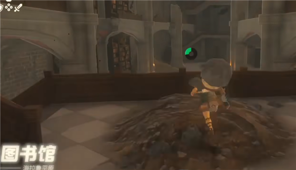 3、从图书馆有块凸起的平台上跳下去,往后转使用究极手能看到一个可以互动的书柜,拉开它就能看到装着近卫鞋的宝箱了。