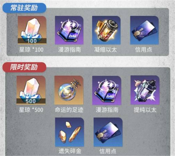 活动奖励分为常驻奖励和限时奖励。通过常驻玩法和限时玩法分别产出。