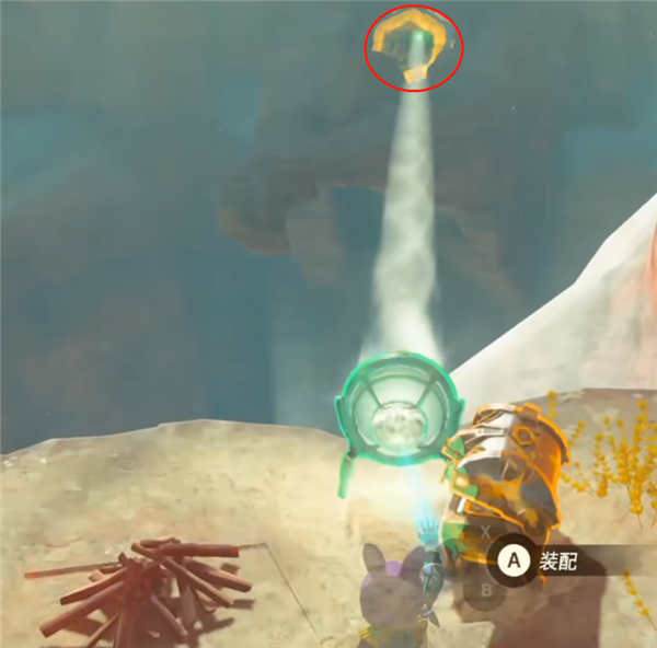 3、开门后滑翔过去爬山进入第八位英雄雕像的内部,进去就能看到有汀空套头宝箱的祭台了。不过开旁边的风扇,把宝箱上的沙子吹开才行。