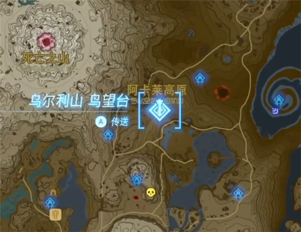 1、从大地图右上角的乌尔利山鸟望台弹射起步,往右手边的这个岛屿飞。