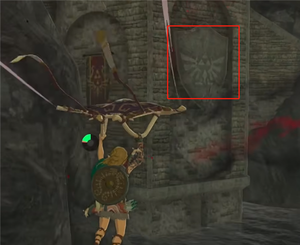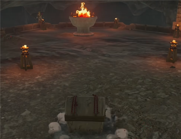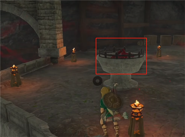 6、顶部会看到一个火盆,用弓箭+火焰果点燃就会出现宝箱,宝箱里就是海利亚盾。