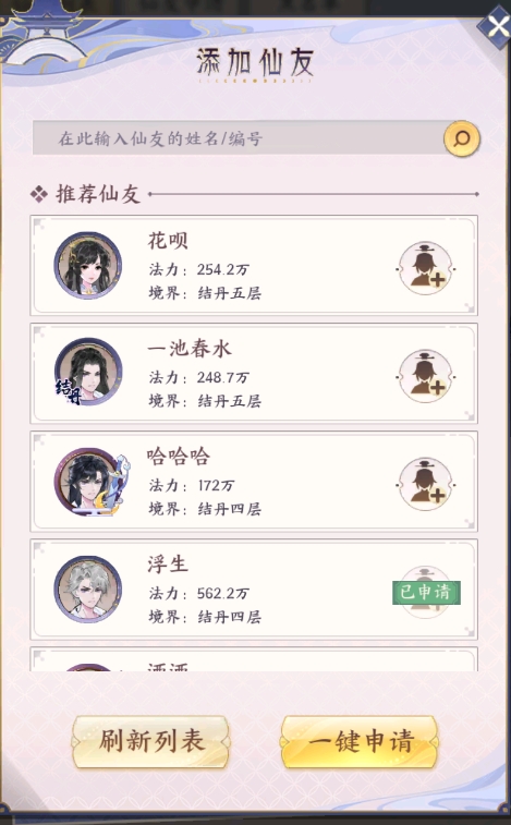 点开可以看到有较多的功能,其中第一行的最后一个仙友就是加好友的地方了。