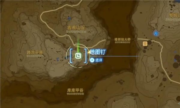 1、在地图西侧的吉希山丘下方的绿色光标处,在空中滑翔过去。