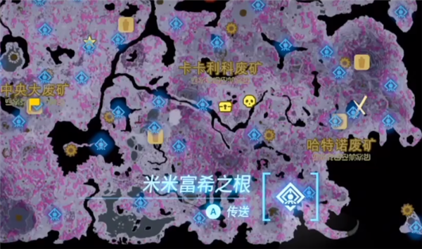 1、传送到地底右下角的米米富希之根,然后去往西南部的卡尔谷采矿场紫色图钉处。