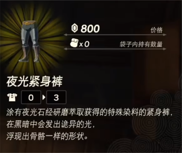 3、完成拉兹莉的支线后,我们就可以在商店里原价买到夜光套装了,夜光面罩需要800卢比,夜光紧身服需要800卢比,夜光紧身裤需要800卢比,总共需要花费2400卢比。