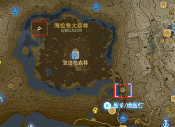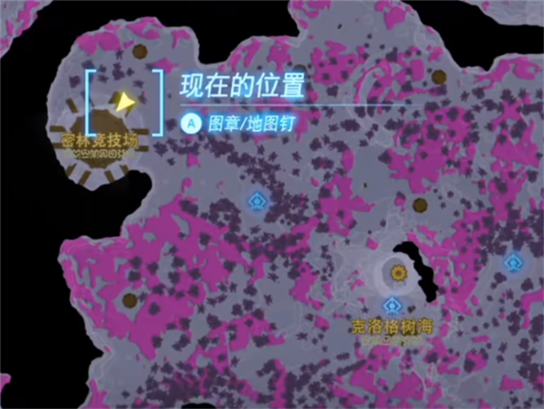 1、我们可以先标记一下地表的克洛格森林左上角的位置,然后右下角地表的洞穴进入,一路跑过去。