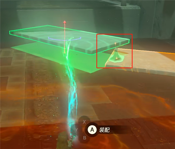 1、这里开始我们要学会使用究极手粘合物体,就石板举起来,靠近需要粘合的物体,绿色光点的位置就是它们会粘合的位置。调到我们需要的位置,然后按下A键,就能让两块石板粘合在一起。