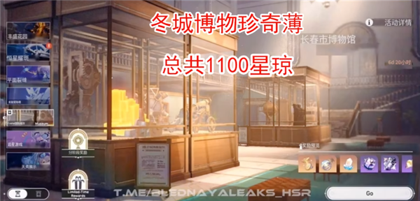 开拓者将成为冬城博物馆的代理馆长,收集展品和寻回被偷走的展品,奖励分为进度奖励和收藏奖励,合计会给到1100星琼,还有给到能够自定义装备主属性的自塑尘脂哦。