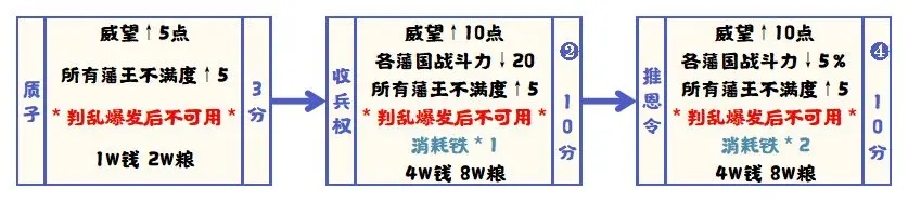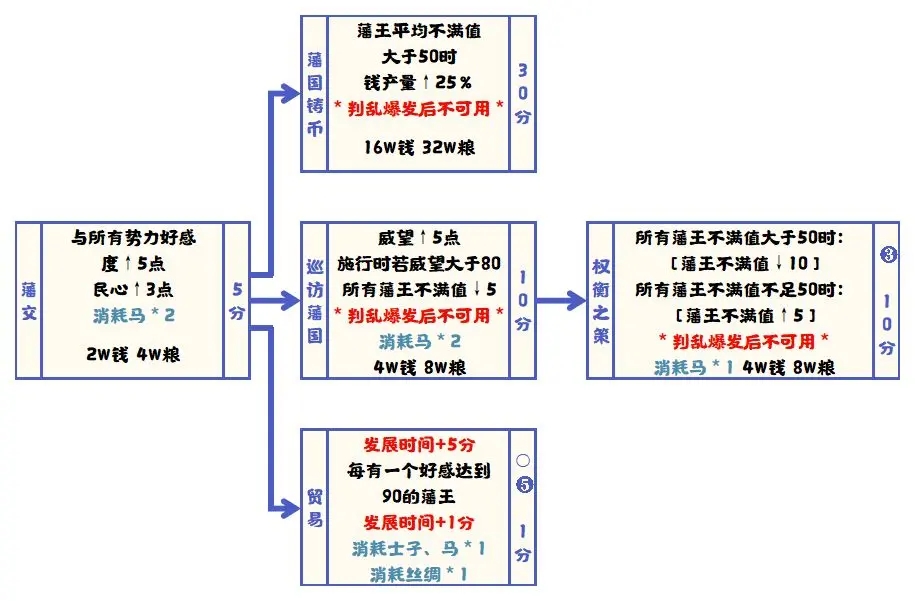 在家宴前会盟一次,给燕王一块地,点出郡国并行。之后一定要在会盟前保持100威望,不然会被藩王抢次数,家宴也是,威望低于80好像不会出。