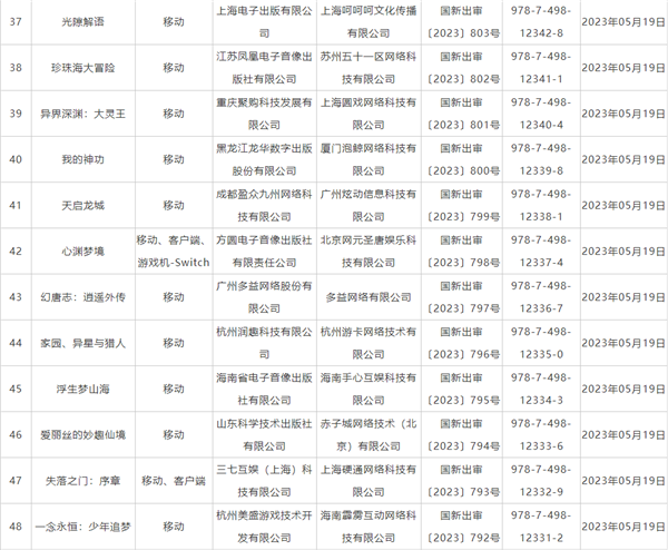 虽然与今年前四个月通过的游戏版号相比,5月的大作较少,但依然不缺乏精品游戏,比如有腾讯的王牌战士2、网易的七日世界、恺英网络的永恒觉醒、中青宝的弈仙牌、三七互娱的失落之门:序章等。感兴趣的玩家们可以多多关注官方媒体的后续消息。