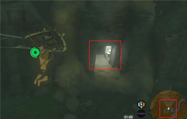 出洞口继续沿着河流走,发现第三个洞口,进入后砍断门口的藤蔓,在高台上的宝箱里就能发现雷光头饰。