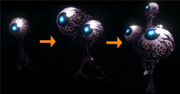 4、四只眼受到10点以上的伤害,会变成两只眼,两只眼受到8点或以上伤害,会变成一只眼。一只眼受到6点或以上伤害会死亡,它施予的注视我方英雄的标记将会消失。在它下次行动时,将会再次以一只眼的形态复活,复活后的眼珠,自带一层闪避。