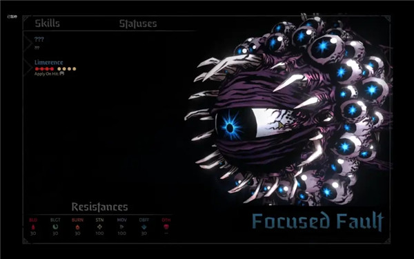 2、一开始的敌人是四个带有“闪避”标记,血量为6点的独立眼球。这四个眼球的攻击将受到“嘲讽”标记的影响。眼球的初始速度非常快,并且会给对应位置的英雄(1号位对1号位这种)上“观察”debuff。一个英雄附带1个或多个时,回合开始时,会增加1点压力。