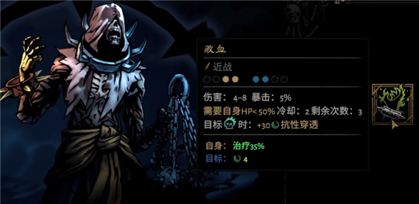 6、死神残血的时候100%死亡抗性,直到出现败血技能,无视死亡抗性,直接击杀,通关,获得新技能败血。