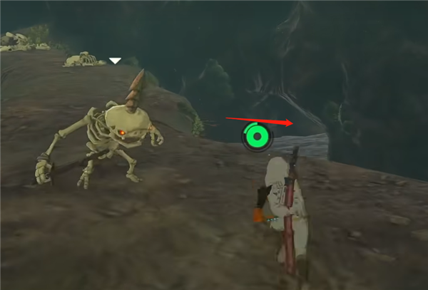 2、然后沿着隧道往左前方走,看到一只莱克之后,通过它上方的通道,碎石用弓箭+炸弹果就可以清理。