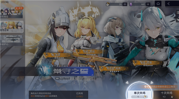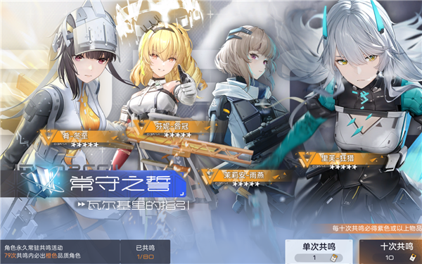 3、游戏初期一共有3个池子,每十次共鸣都必得紫色品质或者以上的物品。