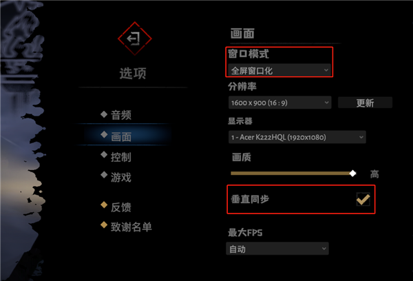 具体的设置方法是回到主菜单-按下ESC键呼出选项栏-选择画面-切换窗口模式-勾选垂直同步即可。