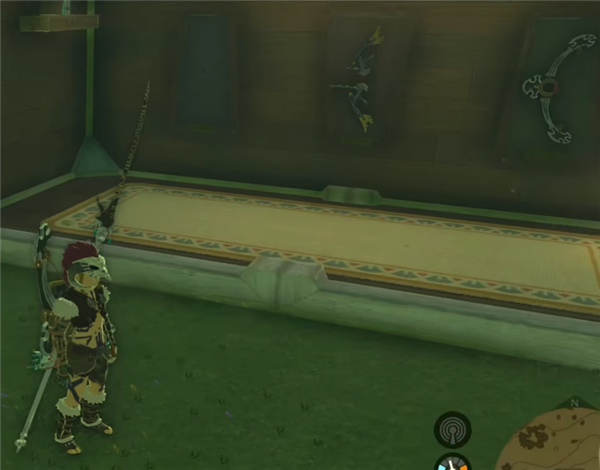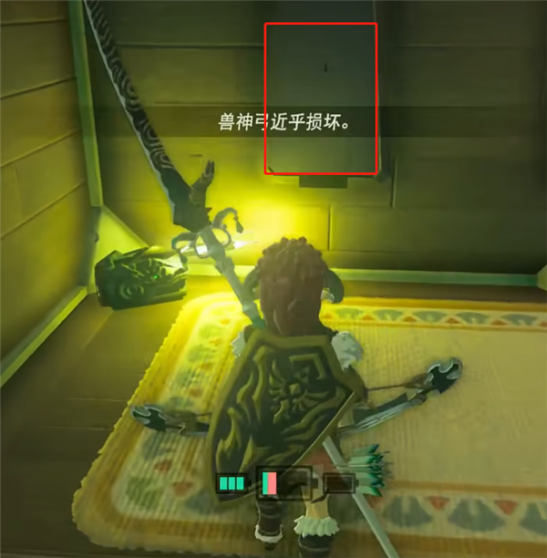 2、操纵林克手持需要复制的弓向空的武器架走过去,在被电的瞬间,按下A键,进行陈列。快要损坏的武器也可以复制,复制出来的武器是新的。