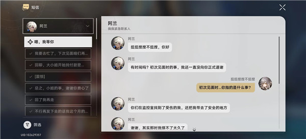 1、我们需要先收到阿兰的道谢短信,触发任务。去到空间站找阿兰,跟着大部队去迎接螺丝咕姆的到来。过完剧情之后,和黑塔投影旁边的NPC伦纳德对话,正式开启任务。