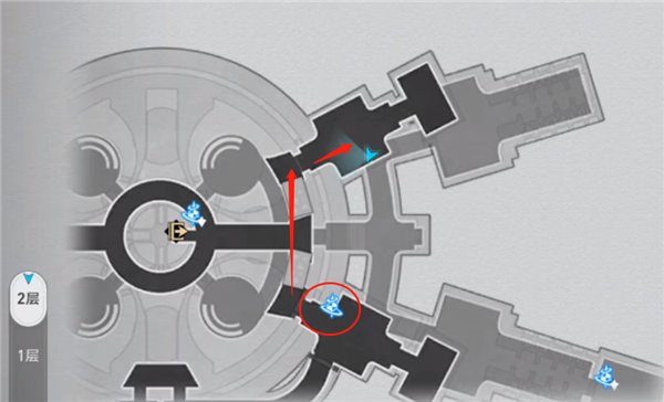 具体位置就在收容舱段的二楼的三个黄圈内,闪烁金光的位置。
