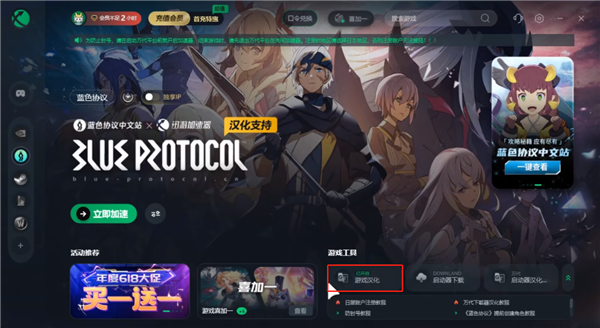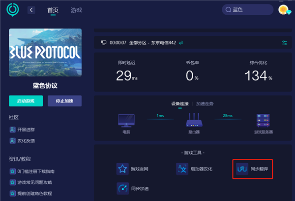 二、使用迅游加sq内容的游戏汉化功能,使用“蓝色协议中文站”提供的测试版一键汉化功能。但存在游戏无法正常运行和被封禁的风险,个人不是太推荐。安逸但是有风险。