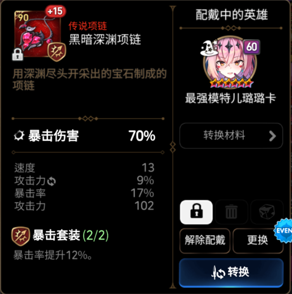 4、项链的核心主属性是暴击率和暴击伤害,戒指的核心主属性是效果命中和效果抗性,鞋子的核心主属性是速度。核心主属性指的是如果你想堆这方面的属性,从对应部位入手是最容易成型的。