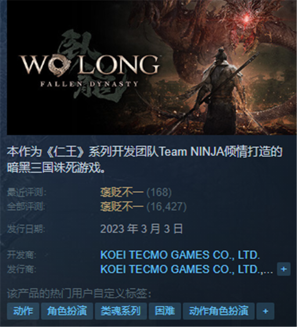 卧龙苍天陨落是《仁王》系列开发团队Team NINJA倾情打造的暗黑三国诛死游戏。背景设定在东汉末年-三国鼎立的这段时间线里。玩家将在游戏中化身无名勇士,和经典三国英雄配合战斗,使用奇术,召唤神兽,力战各路豪杰和鬼怪,在动荡纷乱的东汉末年寻找引发乱世的“丹药”背后的秘密。