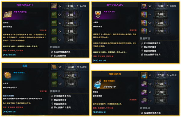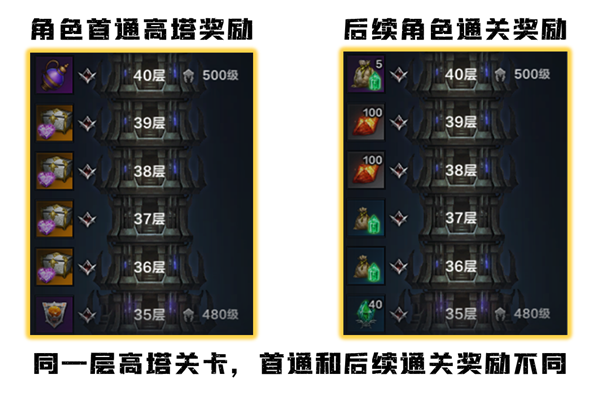 1、每通关一层,则给通关该层的角色发放一次奖励,但账号下首通(第一次通关该层)每层的角色领取的奖励和后续角色二次通关的奖励是不一致的。账号下的第一个角色通过时,会给予一些比较特殊的材料,比如巨人之心,伟大艺术品,人物技能点数,技能符文等。
