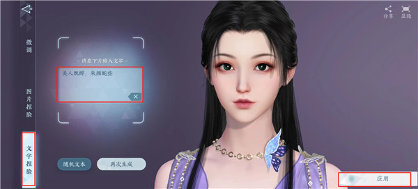 2、然后在最左侧菜单栏选择文字捏脸,输入对应的文本。