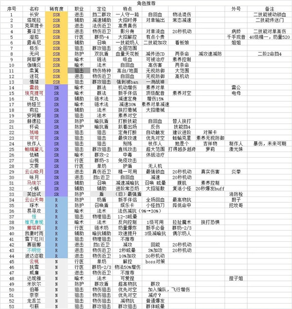 主要从角色稀有度、职业、定位、特点几个方面来简单分析游戏中目前版本的所有角色。