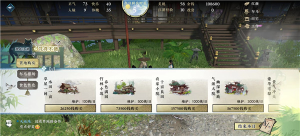 汴京开混分为混在江湖和混的不错两个环节。混在江湖是我们的日常活动,每天限制5个时辰。混的不错是购置田地、车马和求爱。需要我们合理安排时间投入。