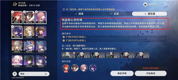 ②BOSS回合,如果抢不到先手就直接姬子开大。开局破小怪弱点(我记得右边小怪弱量子,左边小怪弱火,这两个是姬子和希儿各自的目标),然后注意不要清完小怪(留一个下一波破弱点)。