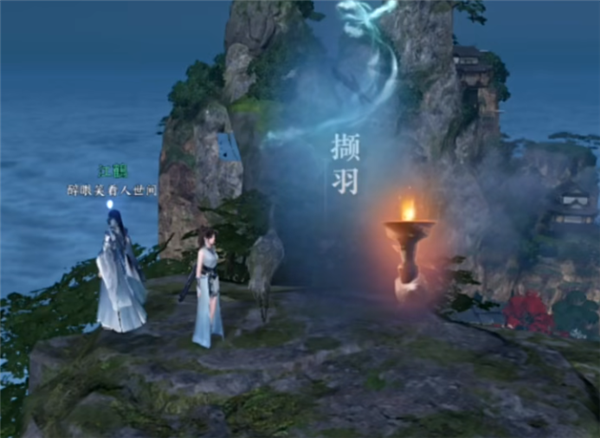 4、在第三座山峰(1272,898),观察仙鹤雕像触发“撷羽”,捡起仙鹤旁边的羽毛就可以完成任务。