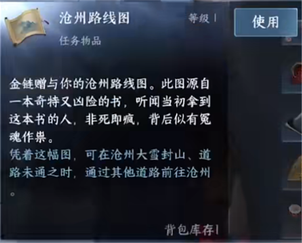 三、使用在背包里的沧州路线图道具,即可开启沧州地图。