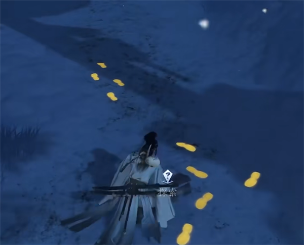 4、然后跟随任务指引渠道(800,1108)的篝火堆,阅读无名手记,然后开启望气,追踪黄色脚印找到迷阵。
