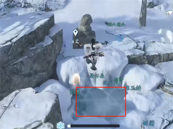 2、前往位置(917,1201)破冰进入山洞,往山洞深处走,路上会有一个冰面,跳过去继续走,然后打开第一个宝箱,宝箱密码是392。