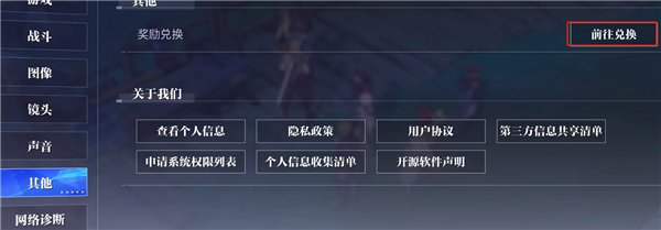 3、在其他栏里点击右边的奖励兑换,按大小写输入兑换码即可兑换游戏奖励。