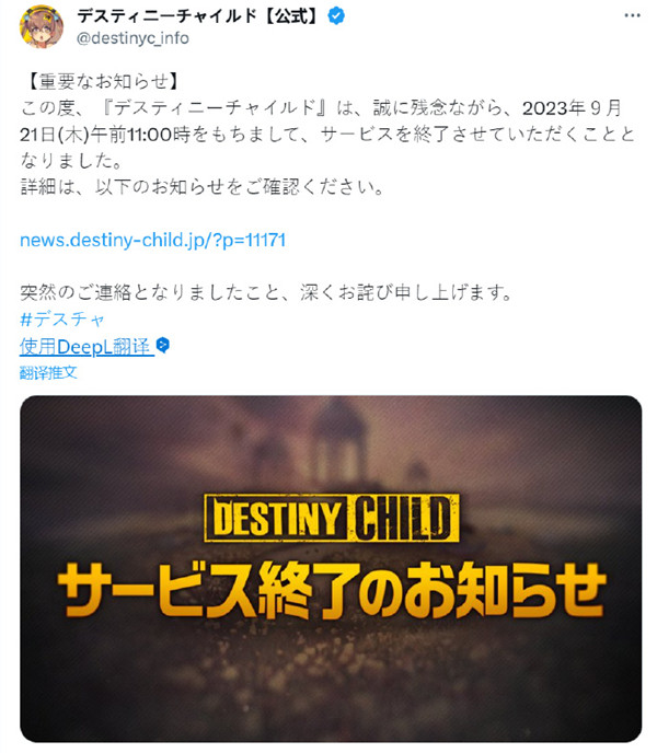 手游《天命之子/命运之子》(Destiny Child)官方宣布游戏的韩服、日服和国际服都将于2023年9月21日正式停服。天命之子最早的服务器韩服推出时间为2016年10月,至今约2458天。