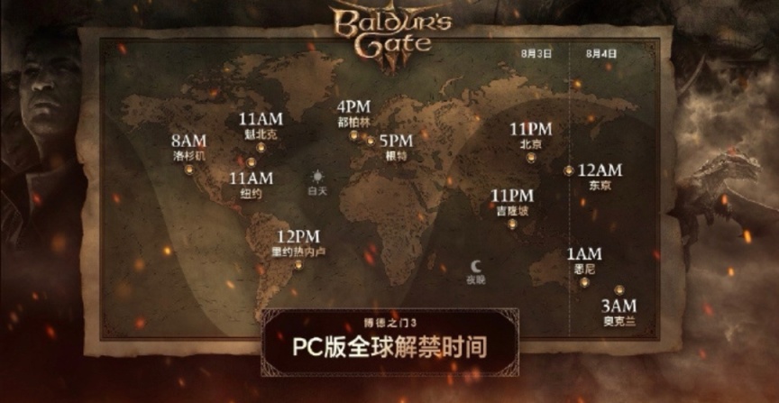 《博德之门 3》将于北京时间8月3日晚上11点点全面解锁。
