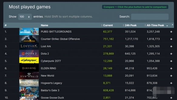 另外,《博德之门3》同时在线人数也进入了Steam历史榜单前十,目前排在第九名,超过了之前大热的免费游戏《鹅鸭杀》(702845),仅次于2023年的另一款大热门《霍格沃茨之遗》(879308)。