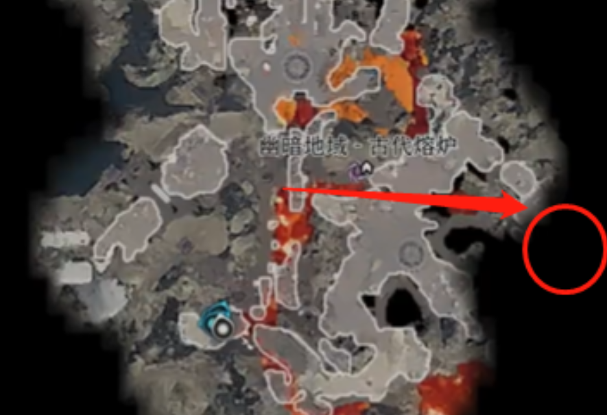 2、第二块秘银矿石的位置在古代熔炉右下方红色圈内,来到该位置后需要击败沿途的炎魔。
