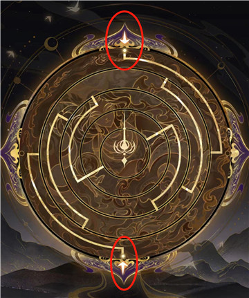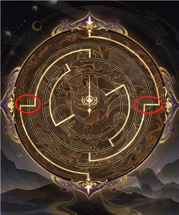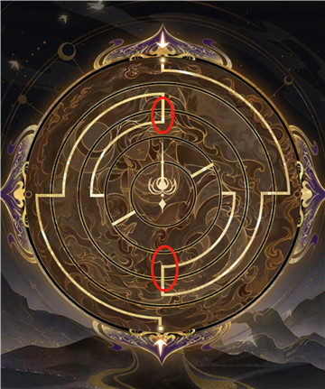 1、首先看箭头高亮的地方把最外围的第五圈跟上下有发光箭头的地方对准