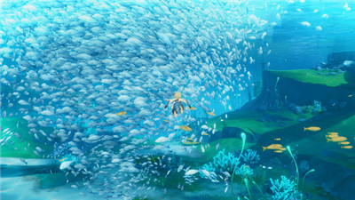 在强大的GPU基础之上,4.0版本还新增了两项功能来增强水下的沉浸感:群体模拟和柔体模拟。前者模仿了群体生物如何运动,并能呈现出诸如鱼群风暴等令人惊叹的现象,让每条鱼都有自己的移动方式,但也同时符合整体鱼群的移动方向;后者则用来描绘在柔和的潮水和洋流中摇曳的水草,为水下探索增添了迷人的魅力。