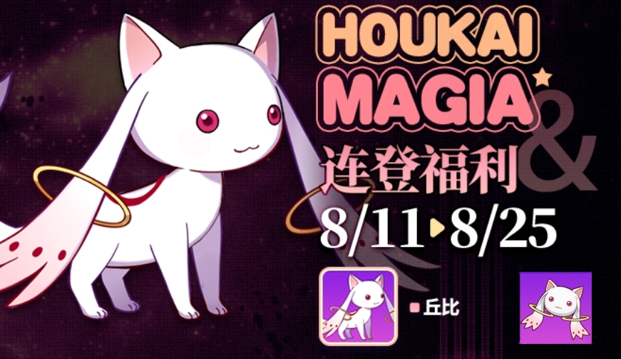 8月11日00:00~8月25日24:00期间,玩家登陆游戏即可从登录福利中领取10个使魔丘比的碎片备用身体。
