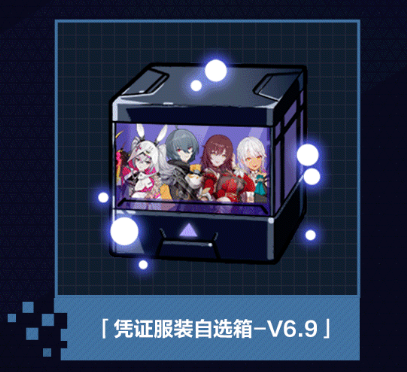 6.9版本凭证可自选服装有:迷城骇兔-纯白天穹、午夜苦艾-午夜马天尼、甜辣女孩-等待下课、黄金·璀璨之歌-绯夜颂歌